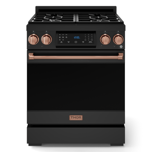 Gordon Ramsay by THOR Kitchen 30" 4.55 cu. ft. Professional Natural Gas Range with Tilt Panel Touch Control and Self-Clean in Matte Black with Rose Gold Accents- RSG30B-RSG
